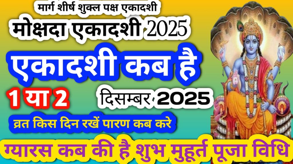 Post Views: 55 Mokshada Eakadashi Kab Hai🌼 मोक्षदा एकादशी: पितरों की मुक्ति और श्रीकृष्ण कृपा का अनमोल अवसर, जानें पूरा पंचांग, भद्रा काल, पूजा विधि और व्रत पारण का शुभ…